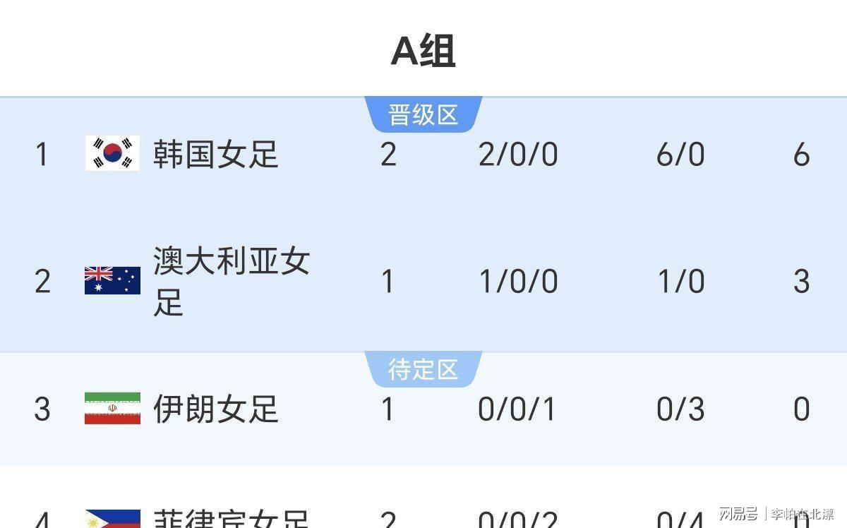 凭借两连胜积6分,韩国队成为本届亚洲杯首支小组出线的球队,不出意外的话,她们将在最后一轮与澳大利亚队争夺小组第一,虽然前两轮的对手并不算强,但看得出来韩国队来者不善。